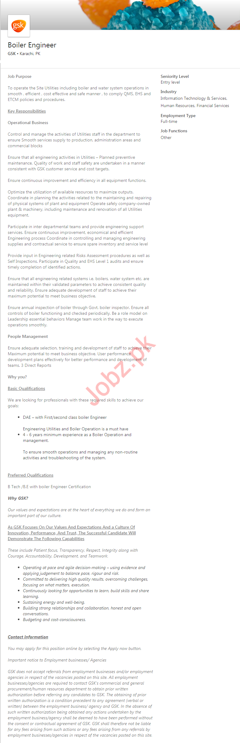 Latest GSK Private Limited Engineering Posts Karachi 2025