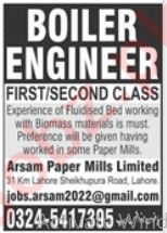 Latest Arsam Pulp and Paper Board Industries Pvt Ltd Engineering Posts Lahore 2025