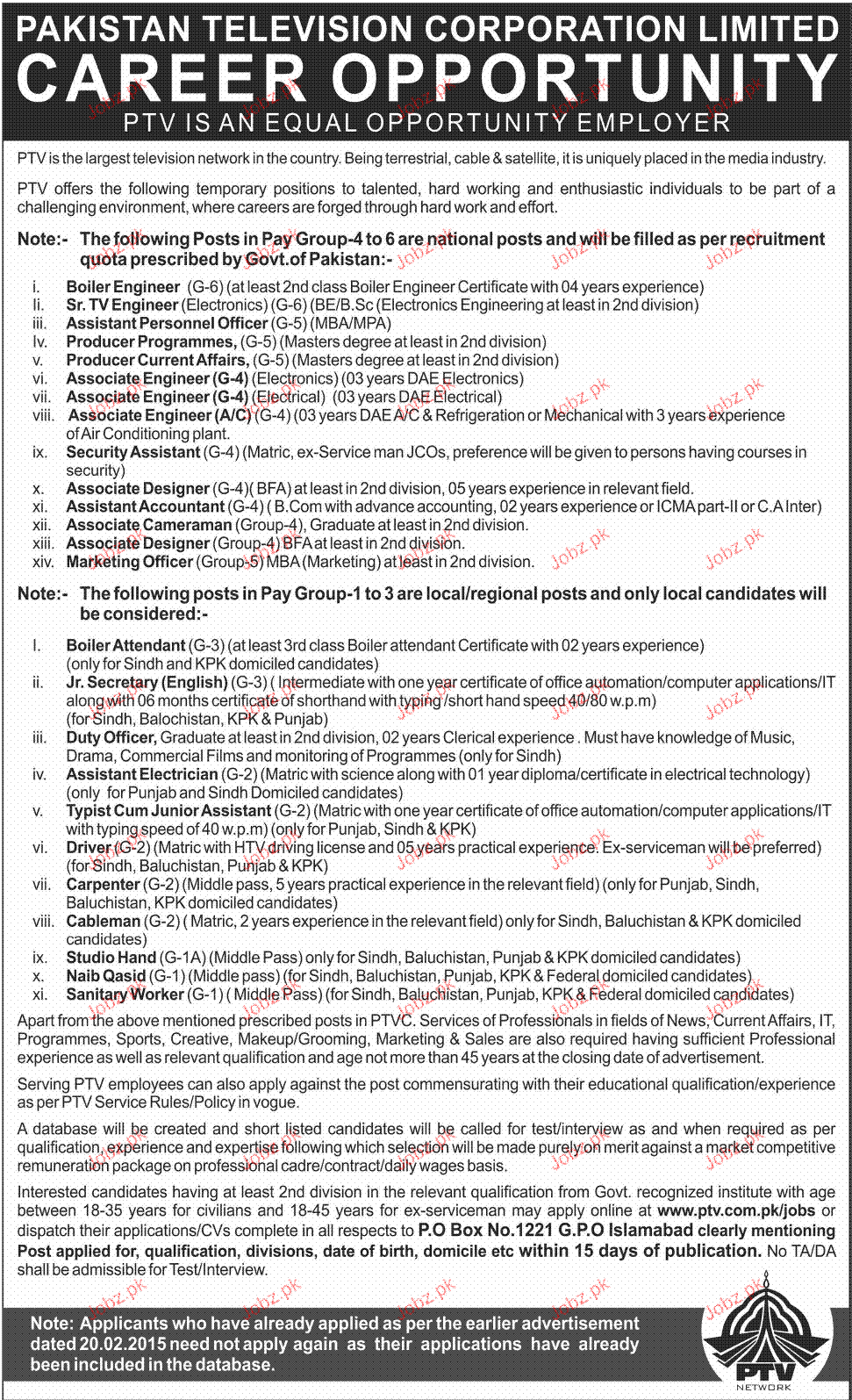 Apply as per details in job advertisement. Login to view further details of how to apply via https://www.jobz.pk online.
