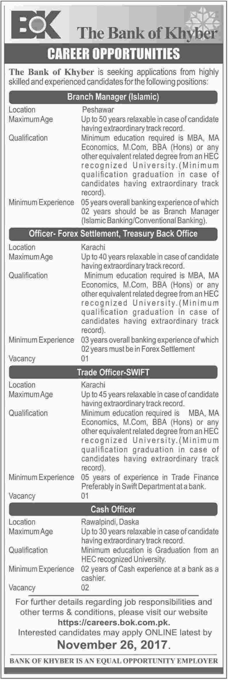 Latest The Bank of Khyber BOK Bank Posts Peshawar 2025