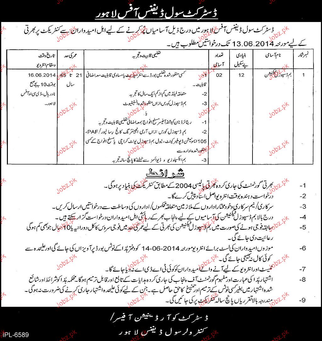 Apply as per details in job advertisement. Login to view further details of how to apply via https://www.jobz.pk online.