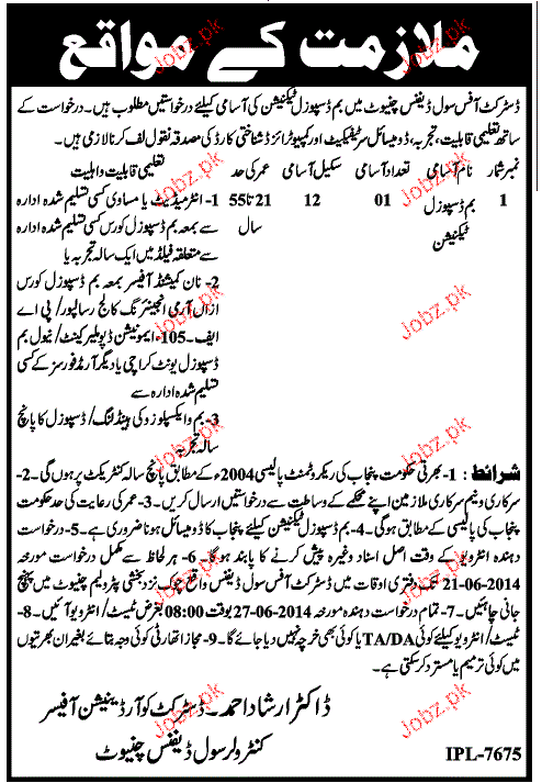Apply as per details in job advertisement. Login to view further details of how to apply via https://www.jobz.pk online.