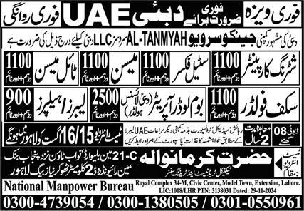 Hazrat Karmanwala Technical Trade Test & Training Center Dubai, abu dhabi Dubai invites applications from eligible candidates for the post of boom loader operator, tile mason, mason, labor, shuttering carpenter, scaffolder, steel fixer and helper as per advertisement of August 15, 2025 published in daily Express Newspaper. DAE, Bachelor, Intermediate and Matric etc. educational qualification will be preferred.