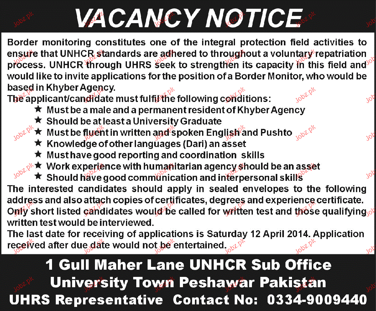 Apply as per details in job advertisement. Login to view further details of how to apply via https://www.jobz.pk online.