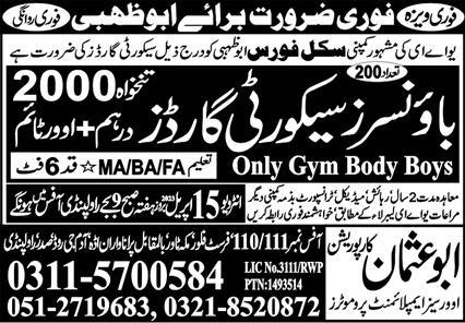 Abu Usman Corporation latest Overseas Security jobs and others can be applied till April 15, 2023 or as per closing date in newspaper ad. Read complete ad online to know how to apply on latest Abu Usman Corporation job opportunities. Security skills may beneficial for these Abu Usman Corporation jobs. Salary varies from 157000. Overtime might be allowed. On job medical, transport and accommodation facility is provided.