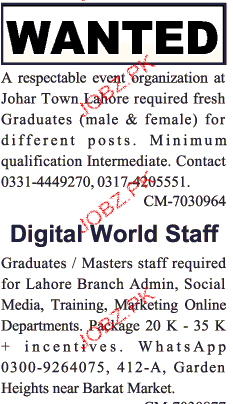 Apply as per details in job advertisement. Login to view further details of how to apply via https://www.jobz.pk online.