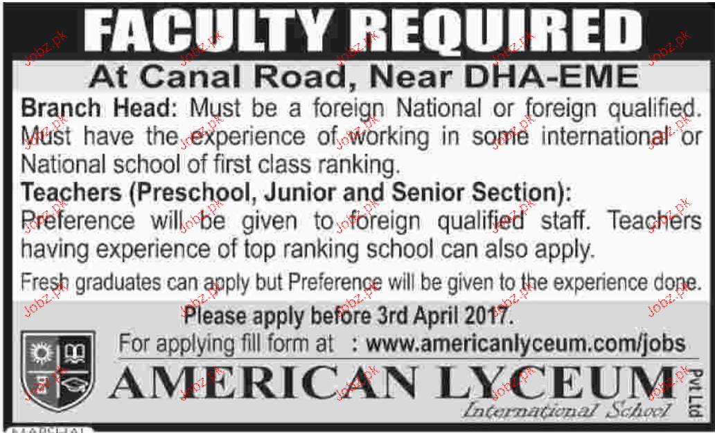 Apply as per details in job advertisement. Login to view further details of how to apply via https://www.jobz.pk online.