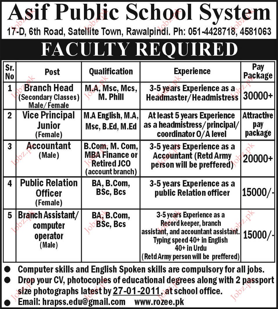 Branch Head, Vice Principal, Accountant, Public Relation Job