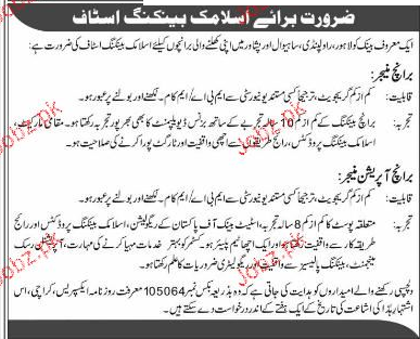 Branch Manager and Branch Operation Manager are required in karachi.