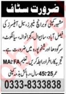 Private Company jobs advertisement dated about 10 September 2023 in daily Jang Newspaper invites application for the vacant post of sale officer and branch manager in Faisalabad, faisalabad, sahiwal, sheikhupura, gujranwala, sargodha and sialkot Punjab Pakistan. Educational qualifications required Intermediate and MA etc.
