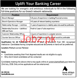 Branch Manager, Branch Operation Manager Job In Bank Alfalah