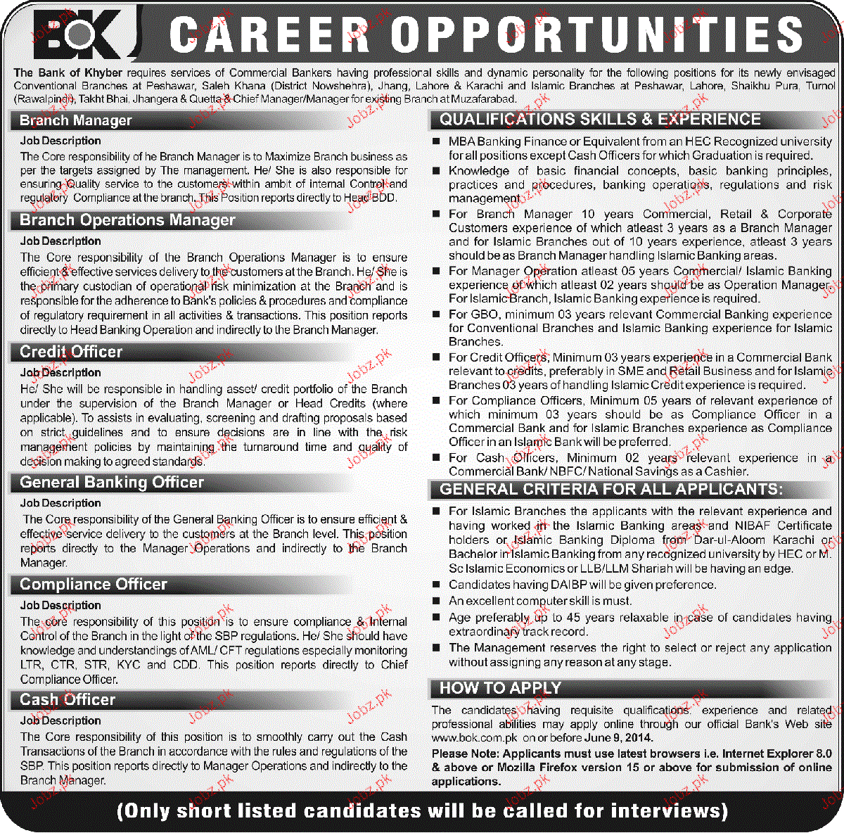 Apply as per details in job advertisement. Login to view further details of how to apply via https://www.jobz.pk online.