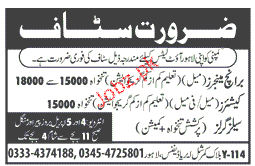Branch Manager, Cashiers and Sales Girls Job Opportunity