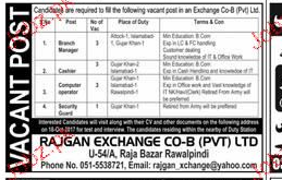Latest Rajgan Exchange Company B Pvt Ltd Management Posts Rawalpindi 2025