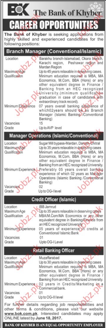 Apply as per details in job advertisement. Login to view further details of how to apply via https://www.jobz.pk online.