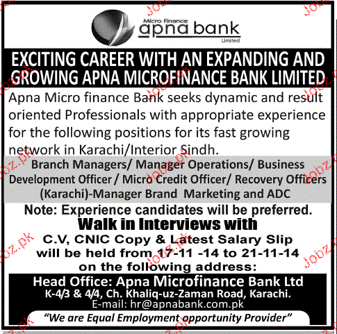 Apply as per details in job advertisement. Login to view further details of how to apply via https://www.jobz.pk online.