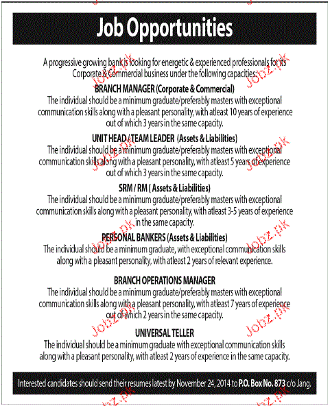 Branch Manager, Unit Head, Personal Bankers Job Opportunity
