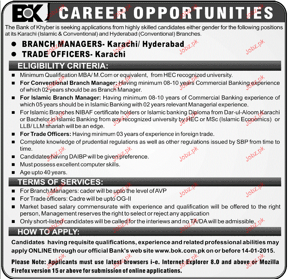 Branch Managers and Trade Officers Job Opportunity
