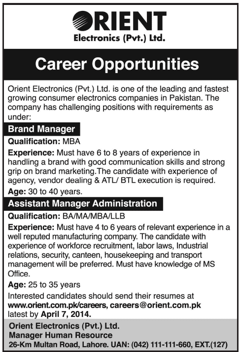 Apply as per details in job advertisement. Login to view further details of how to apply via https://www.jobz.pk online.