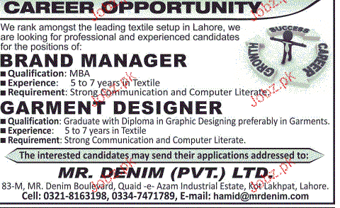 Apply as per details in job advertisement. Login to view further details of how to apply via https://www.jobz.pk online.