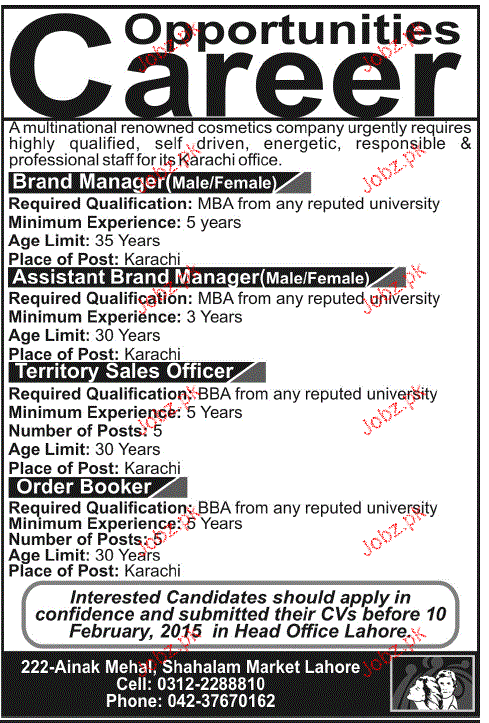Apply as per details in job advertisement. Login to view further details of how to apply via https://www.jobz.pk online.