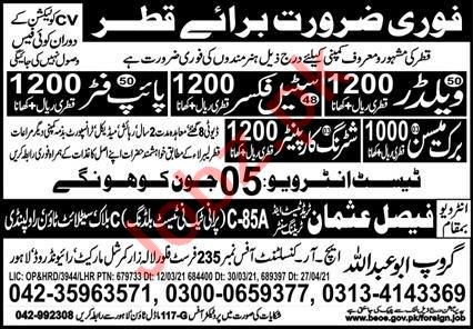 Latest Faisal Usman Overseas Employment Promoters Construction Posts Qatar 2025