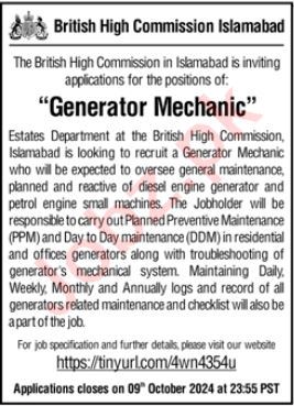 British High Commission Islamabad is looking for candidates for following posts as per job advertisement published in daily Jang Newspaper of September 29, 2024 for location Islamabad, islamabad Islamabad Pakistan: