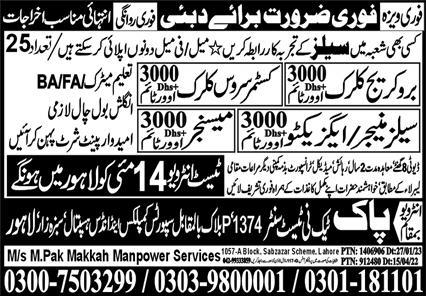 M Pak Makkah Manpower Services is looking for candidates for following posts as per job advertisement published in daily Express Newspaper of May 10, 2023 for location Dubai, abu dhabi Dubai: