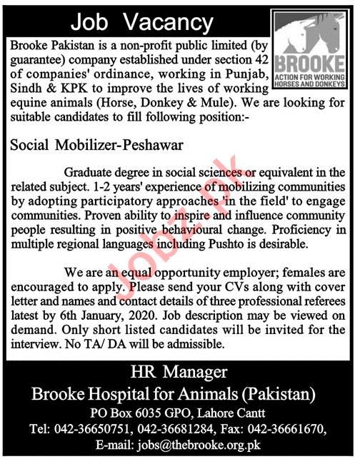 Brooke Pakistan NGO Job For Social Mobilizer in Peshawar KPK