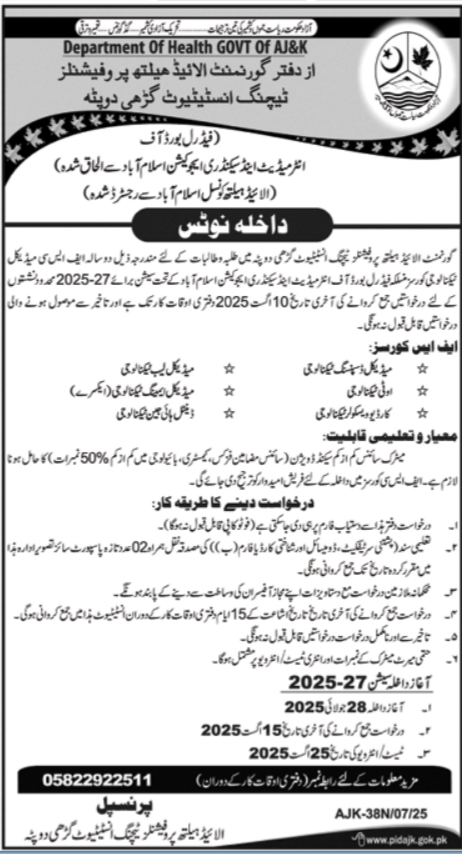 Allied Health Professional and Science College AHPSC BS admissions 2025 has been started. Students can enroll for admissions in Allied Health Professional and Science College AHPSC Karachi Sindh Pakistan for academic year 2025 to continue campus based or online education in Science College. Students for admissions in & criteria can apply as per Government institute admission policy 2025 before closing date as per advertisement. Read newspaper ad for exact details.