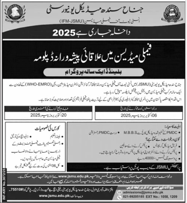 BS Admissions 2025 open in Jinnah Insitute of Medical