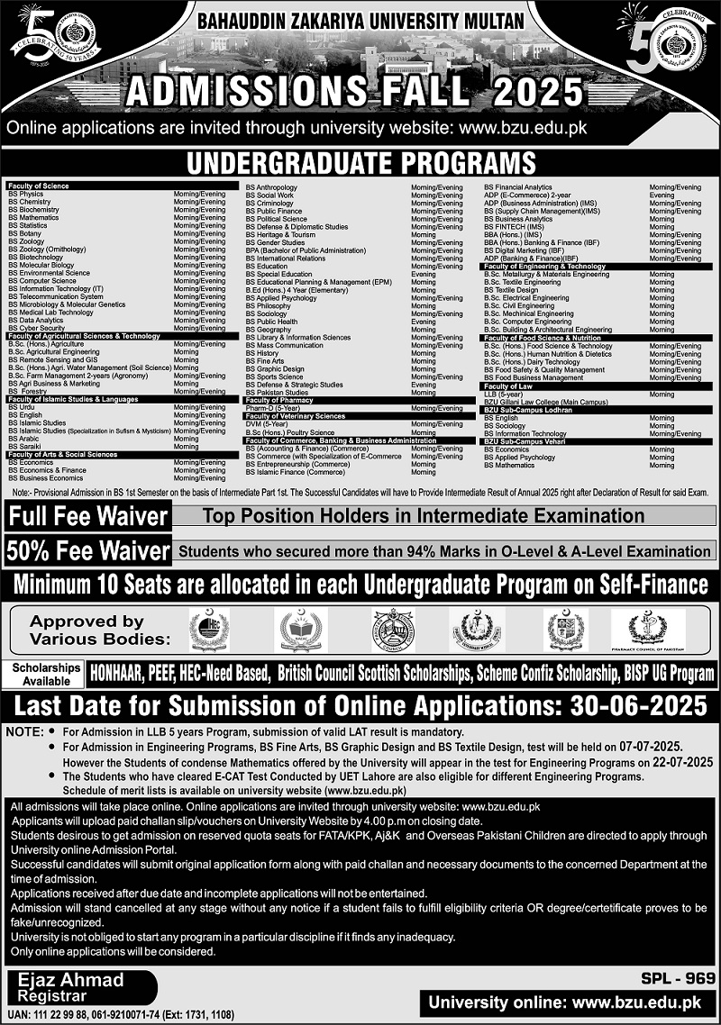BS Admissions 20252 open in BZU
