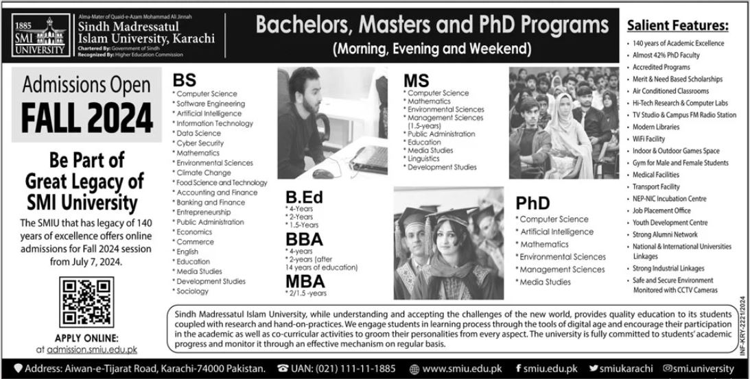 BS, MS and PhD admissions at Sindh Madressatul Islam University