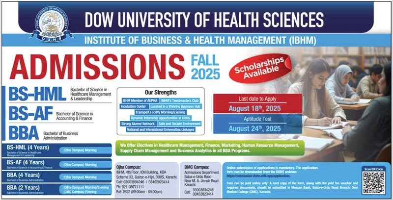 BS, MS, MPHIL Admissions 2025 open in Dow Univeristy of Health Sciences