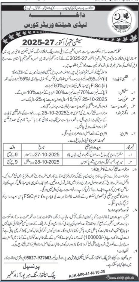 Public Health Nursing School BS, MS, MPHIL admissions 2025 has been announced. Students who want to take admissions in Public Health Nursing School Muzaffarabad AJK Pakistan for academic year 2025 to continue education in Science University can apply. Eligible students for fulfilling criteria for admissions in can enroll as per Government admission policy 2025 till closing date. Read newspaper ad for exact details.