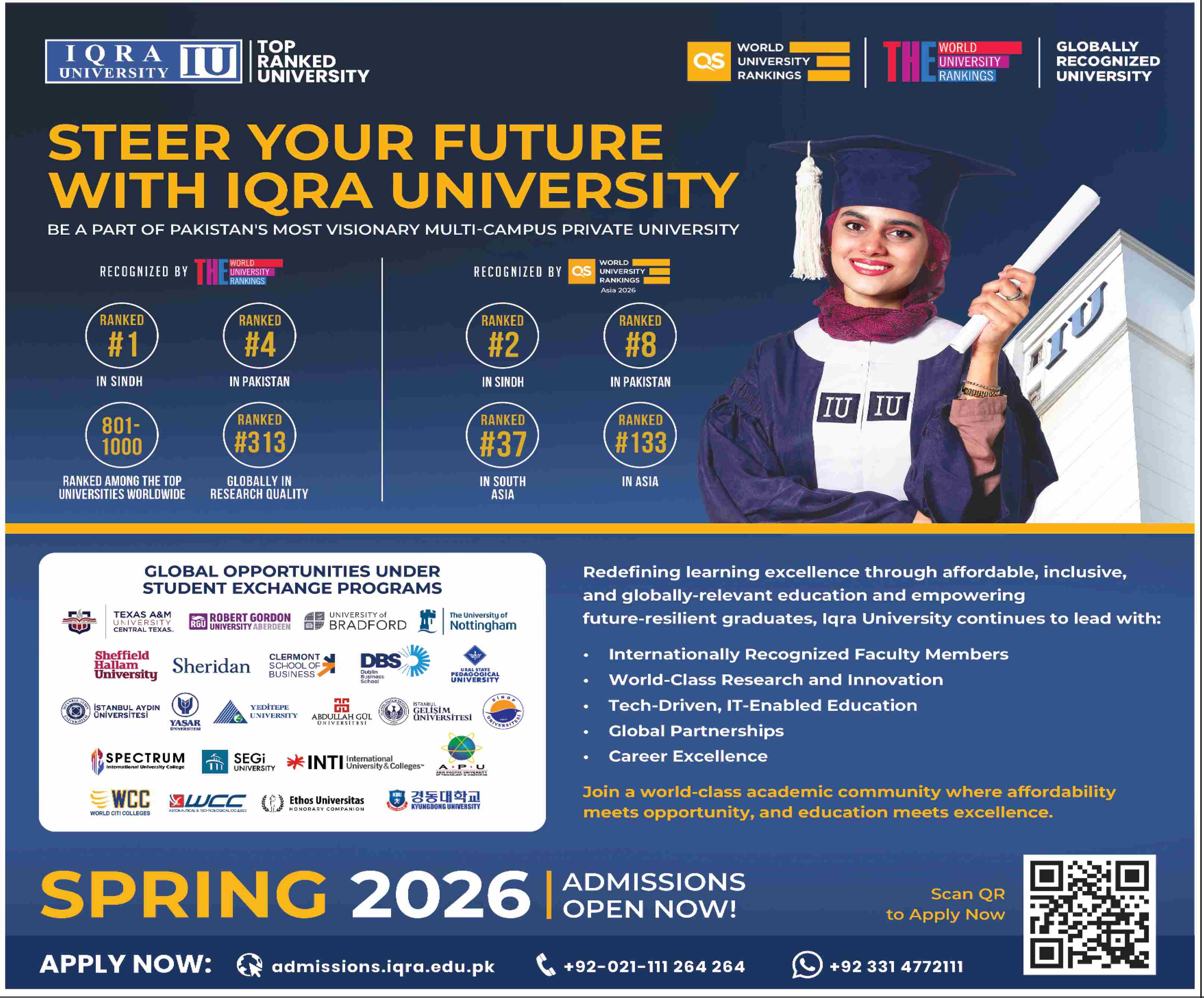 BS, MS, MPHIL, PHD Admissions 2025 open in Iqra University