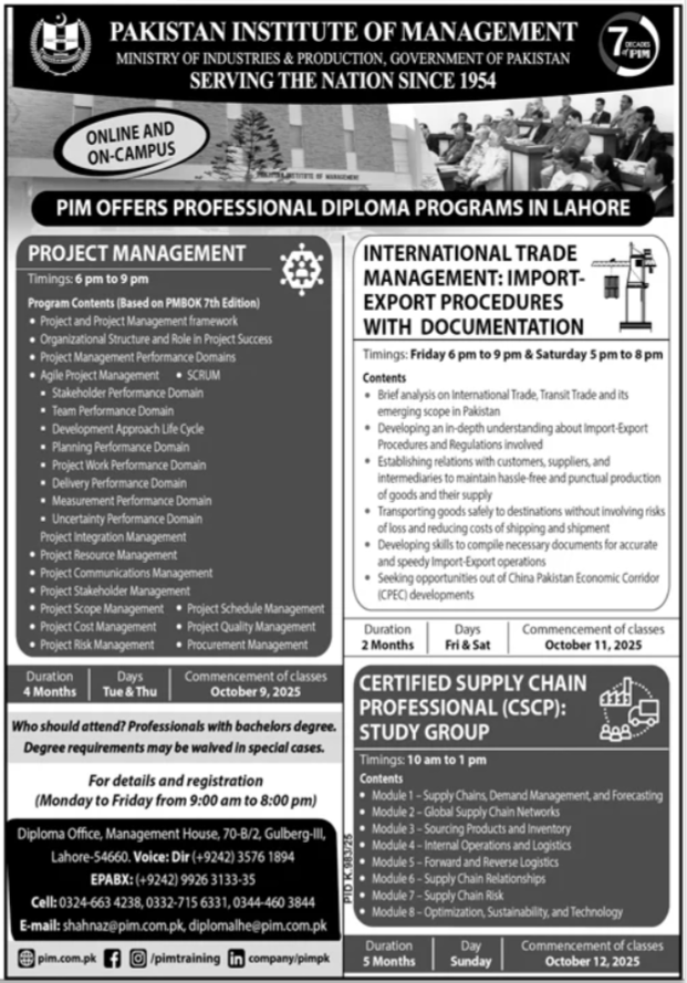 College of Management Technology PIMS MS admissions 2025 has been announced. Students can enroll for admissions in College of Management Technology PIMS Karachi Sindh Pakistan for academic year 2025 to continue campus based or online education in Science University. Students for admissions in can apply for online or campus classes as per Government institute criteria till admission closing date. Read newspaper ad for exact details.