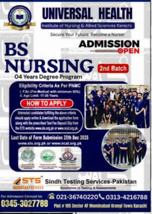 Institute of Nursing & Paramedics has announced admissions 2025 for bs . Students who want to take admissions in Institute of Nursing & Paramedics Karachi Sindh Pakistan for academic year 2025 to continue education in Science College can apply. Students for admissions in & criteria can apply as per Government institute admission policy 2025 before closing date as per advertisement. Read newspaper ad for exact details.