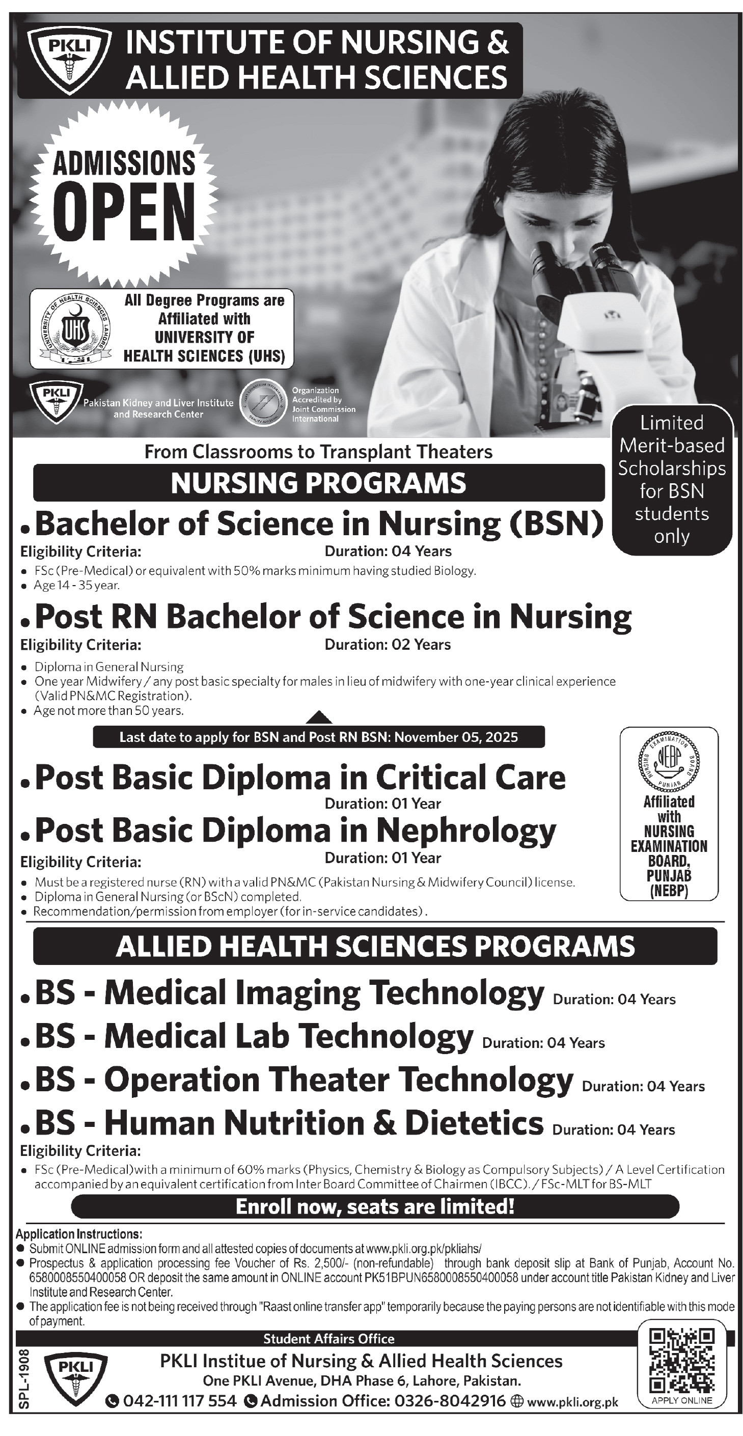 Institute of Nursing & Paramedics bsn admissions 2025 has been announced. Institute of Nursing & Paramedics Lahore Punjab Pakistan welcomes students to apply for admissions in academic year 2025 in Science College. Students for admissions in can apply for online or campus classes as per Government institute criteria till admission closing date. Read newspaper ad for exact details.