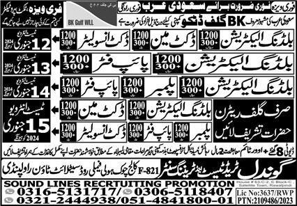 Gondal Trade Test & Training Center jobs advertisement dated about 6 January 2024 in daily Express Newspaper invites application for the vacant post of plumber, docket insulator, pipe fitter, docket man and building electrician in Riyadh, jeddah Saudi Arabia. Educational qualifications required Intermediate, Matric and Middle etc.