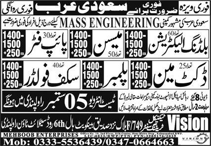 Latest Overseas jobs in Vision Technical Training Center in Construction and others can be applied till 5 September 2025 or as per closing date in newspaper ad. Read complete ad online to know how to apply on latest Vision Technical Training Center job opportunities. Salary varies from 131000.