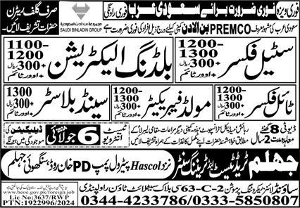 Jhelum Trade Test & Training Center invites applications for job positions advertised in daily Express dated 4 July 2024 for following vacancies in Dammam, tabuk Saudi Arabia.
