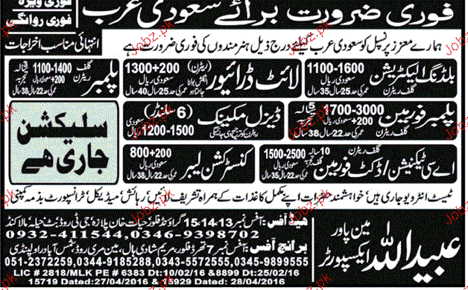 Apply as per details in job advertisement. Login to view further details of how to apply via https://www.jobz.pk online.