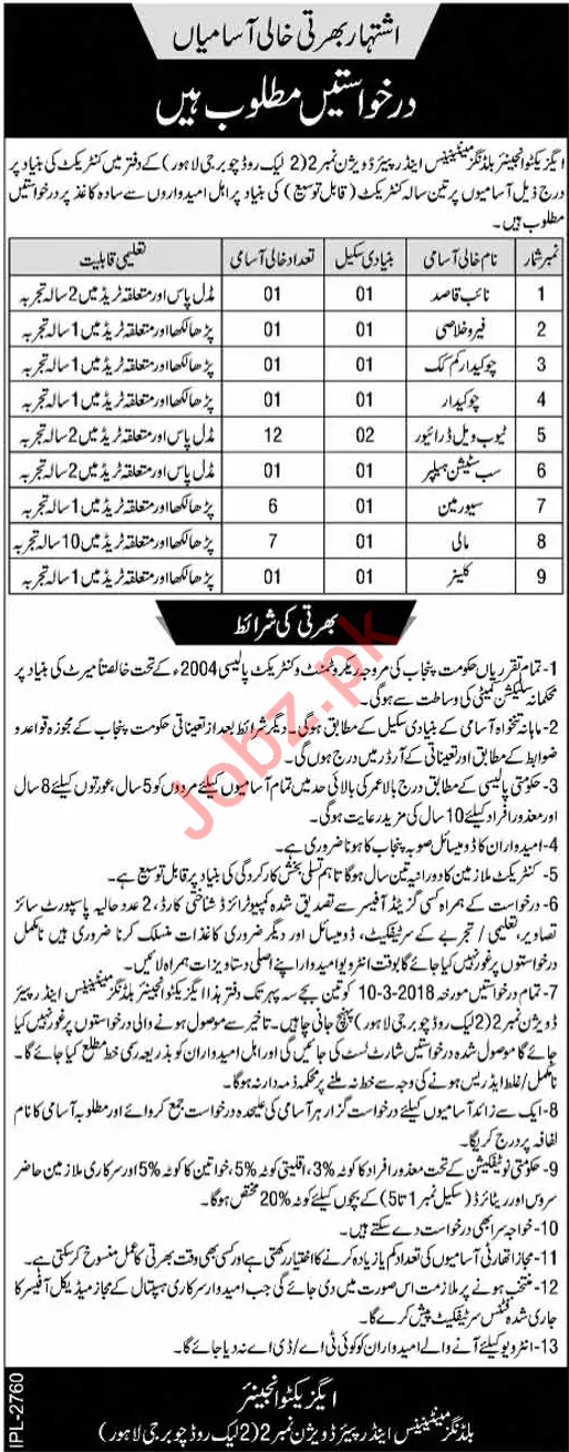 Latest Building Maintenance Department Labor Posts Lahore 2025