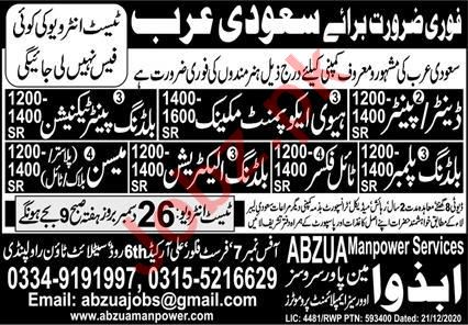 Vacancies in Abzua Manpower Services Advertisement December 2020