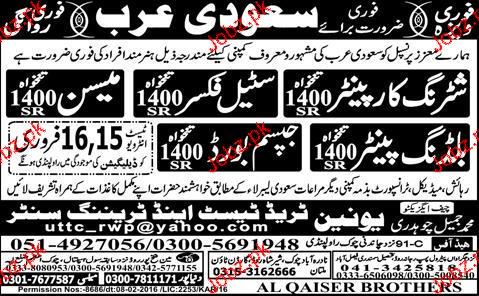 Building Painters, Gypsum Board, Steel Fixer Job Opportunity