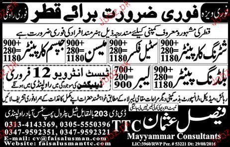Building Painters, Labors, Steel Fixers, Mason Wanted