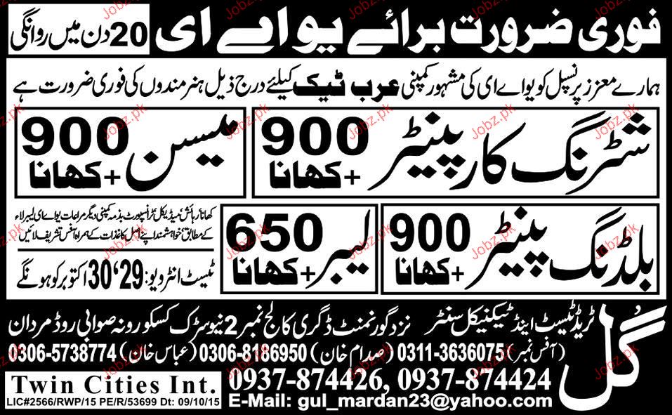 Building Painters, Mason, Shuttering Carpenters Wanted