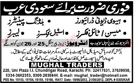 Building Painters, Steel Fixers, Mason Job Opportunity