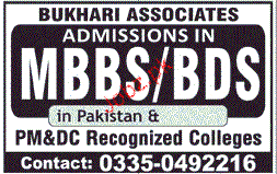 Bukhari Associates Admission in MBBS / BDS in Lahore. Read newspaper ad for exact details.